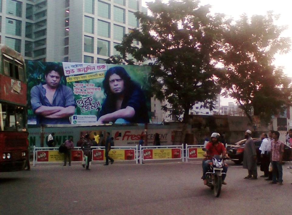 রাস্তার মোড়ে মোড়ে ঢাউস আকৃতির প্রতিকৃতি। বিভিন্ন ভঙ্গিতে আছেন নগর বাউল জেমস। না, প্রতিকৃতিগুলো কোনো সংগীত আসর বা উৎসবকে ঘিরে সাজানো হয়নি। জেমসের জন্মদিনে তার ভক্তরা এমন আয়োজনটি করেছে। এতে পথচারীদেরও বেশ আমোদিত বলে মনে হলো। যাত্রা পথে বিরতি দিয়ে অনেককে দেখা গেছে প্রতিকৃতিটির সামনে দাঁড়িয়ে সেলফি তুলতে।
