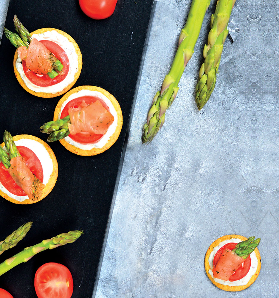 Smoked Salmon and Asparagus on Crackers
