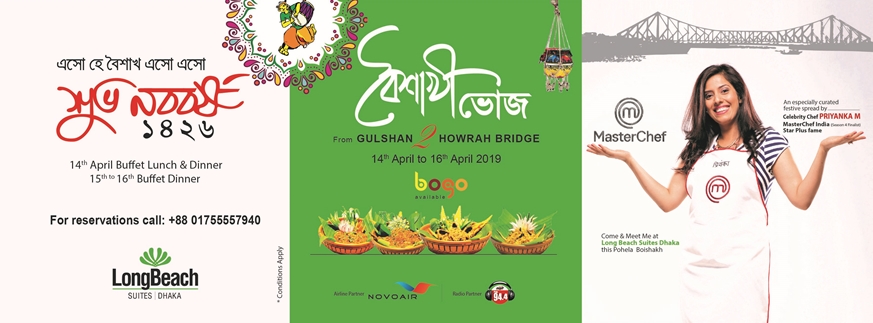 Pohela Boishakh 1426 is just around the corner and the celebration cannot be completed without traditional Baisakhi foods. As you are ready to celebrate Pohela Boishakh with much excitement and intensity, the Long Beach Suites Dhaka is bringing Kolkata to Dhaka. Come experience a unique spread of iconic Kolkata recipes, a sprinkling of the mysterious #thakurbarirRanna. Topped with her signature fusion desserts by Celebrity Chef Priyanka M, MasterChef India (Season 4 Finalist) to give a bespoke Bangla epicurean experience to the food lover.