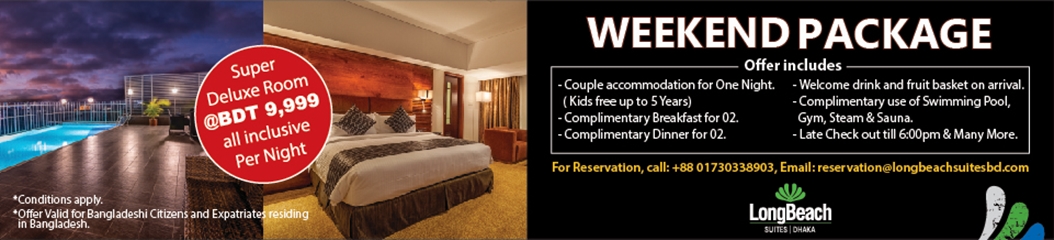 We are offering Buffet Lunch and Dinner on 14th April and Dinner only on 15th and 16th April at an attractive price of BDT 3,500 per person (all inclusive). BOGO offer is available with selected Banks and Telco partners. For more information, call +88 017 5555 7940.