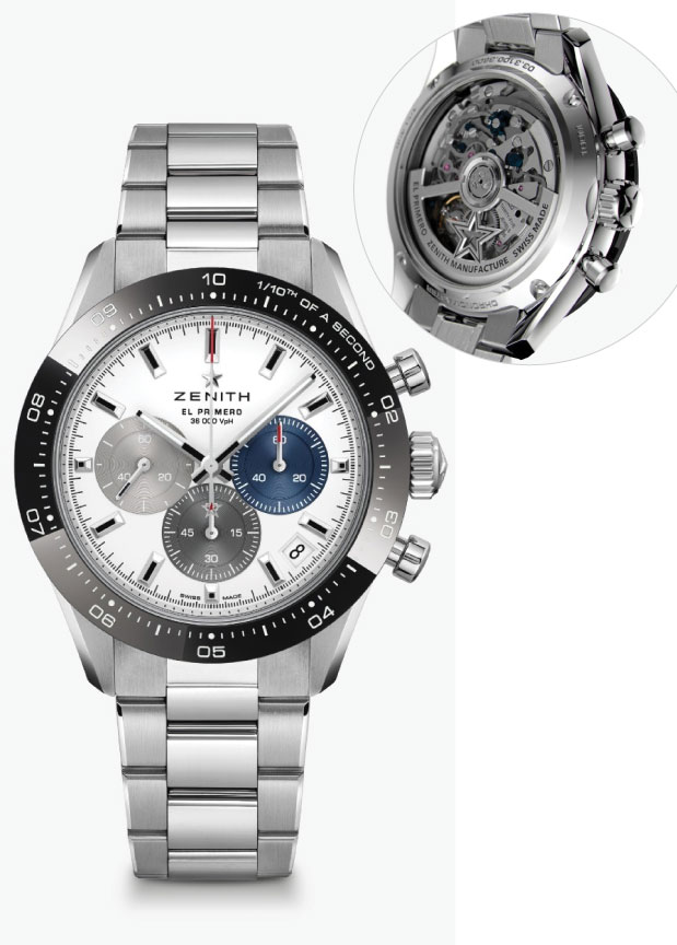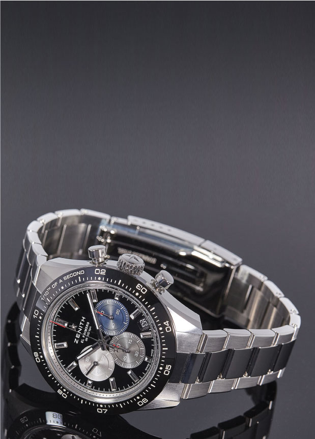 The Chronomaster Sport is the culmination of over 50 years of mastery of the sporty chronograph and the automatic chronograph calibre. Equipped with the latest generation of the El Primero chronograph calibre, it measures and displays elapsed time with a precision of 1/10th of a second in a contemporary yet unmistakably Zenith design.