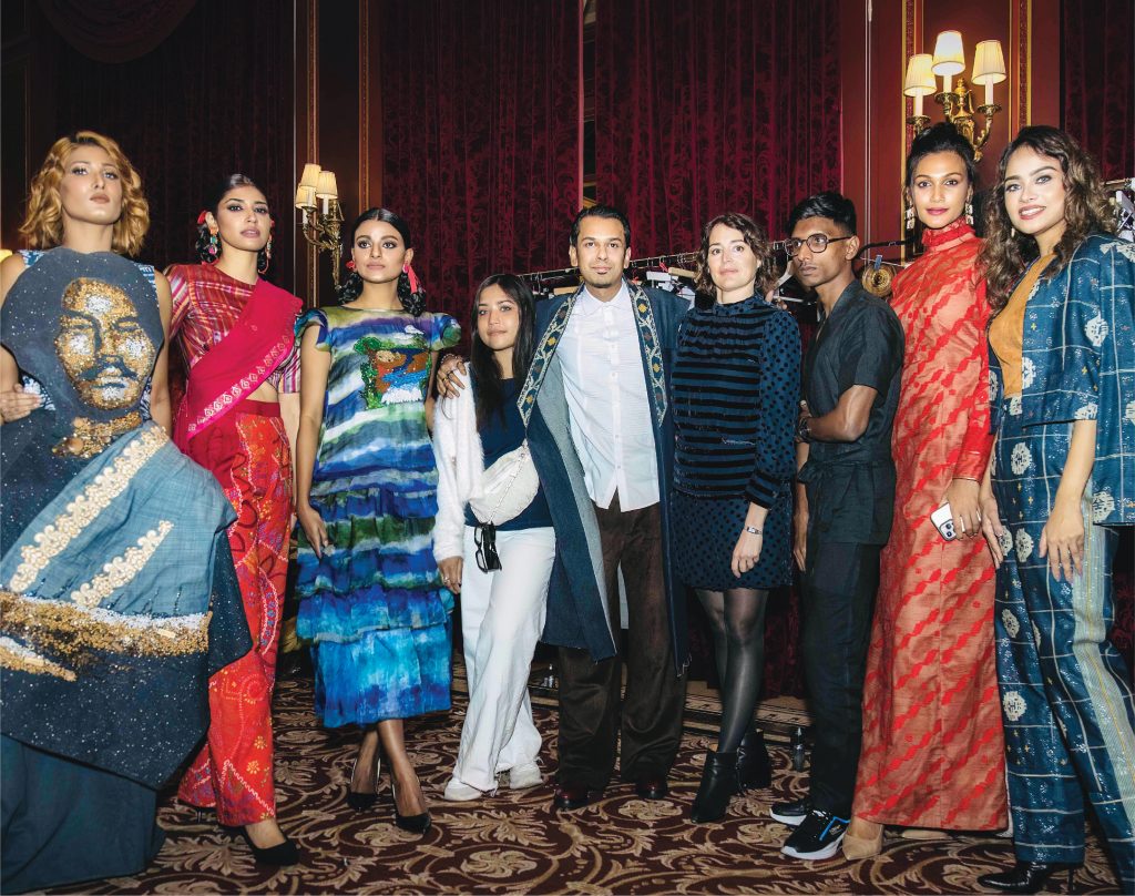 The most valuable highlight of this journey was taking Bangladesh to Paris. Last year when I had my show in Paris, it was as a French Graduate in fashion, not as a Bangladeshi designer representing his country. This time, I did what I had dreamt of from the beginning; I took Bangladesh with me, I took the best Bangladeshi models who fit the aura of my collection: Mashiat, Maryam, Taspia & Sheela, I took Bangladeshi model Spriha from Paris as she lives there now. I was very proud to have Azra Mahmood as a part of our team as I believe she should be in the international scene for the talent and capability she has. And most importantly, I took two young fashion graduates Nishan Rahman and Tabassum Mim with me as my associates who worked day and night with me for this collection. They have just started their journey; this exposure will surpass their vision as it once did for me. In my opinion, it’s not only about upholding Bangladeshi heritage but promoting our talented people was an important highlight of this journey.